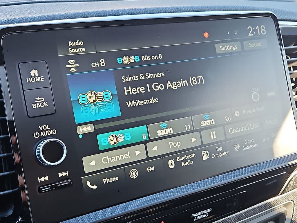 - Radio: 215-Watt Audio System w/7 Speakers -inc: subwoofer, 9" color touchscreen, Bluetooth® streaming audio, Speed-Sensitive Volume Compensation (SVC), wireless Apple CarPlay/Android Auto compatibility and 2.5A USB-A data port in front console, HondaLink, Select HondaLink features are complimentary, 36-month complimentary trials are available for security and remote packages, A subscription is required to continue HondaLink services after the trial ends